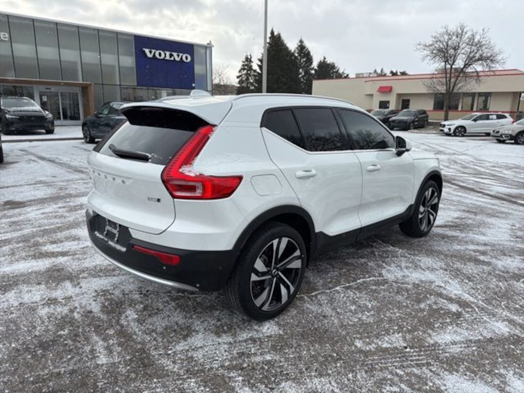 2024 Volvo XC40 B5 Plus Bright Theme Crystal White Metallic Certified. CARFAX One-Owner. Hands Free Blue Tooth, Rear View Back Up Camera, Sunroof / Moonroof, Local Trade In, Remote Start, Navigation / GPS, Balance of Factory Warranty, Non Smoker, Low Miles, Oil, Lube and Filter, Passed Safety Inspection, Vehicle Detailed, No Accident History, Apple CarPlay, Android Auto, Carfax Certified 1-Owner Vehicle, Backup Camera, Lane Departure Warning, Rear Cross Traffic Alert, Blind Spot Monitor, Automatic Emergency Braking, Heated Steering Wheel, Heated Seats, Leather Seats, Adaptive Cruise Control, Keyless Start, Keyless Entry, Brake Assist, Stability Control, LED Headlights, Bluetooth, Premium Sound System, Homelink, Memory Seat, USB Port, Cargo Tray, Climate Package, First Aid Kit, Heated Rear Seats, Heated Steering Wheel, Internet access capable: Digital Services Package w/ 4 Year Subscription, Pixel Technology Headlights, Protection Package Premier, Rubber Floor Mats, Wheel Locks, Wheels: 20" 5-Double Spoke Black Alloy. 24/30 City/Highway MPG